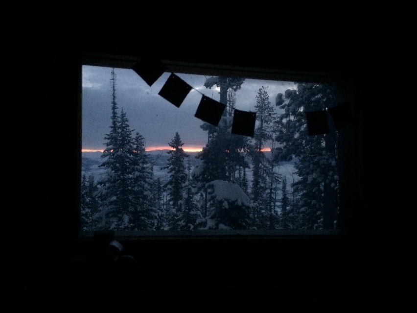 It was at the cabin that we decided to put our beacons on, knowing that we would spend the rest of the day in avalanche terrain. And it was at the cabin that I realized with horror that I had left my beacon in the car. We debated what to do next, either turn around and save ourselves the rest of the climb, or push to the top and ski the whole way down on our skin track. We opted for the second option, constantly evaluating if we should just risk it and ski the massive avalanche path without avalanche gear… but thought better of it. We were treated to excellent views from the summit and just turned around.