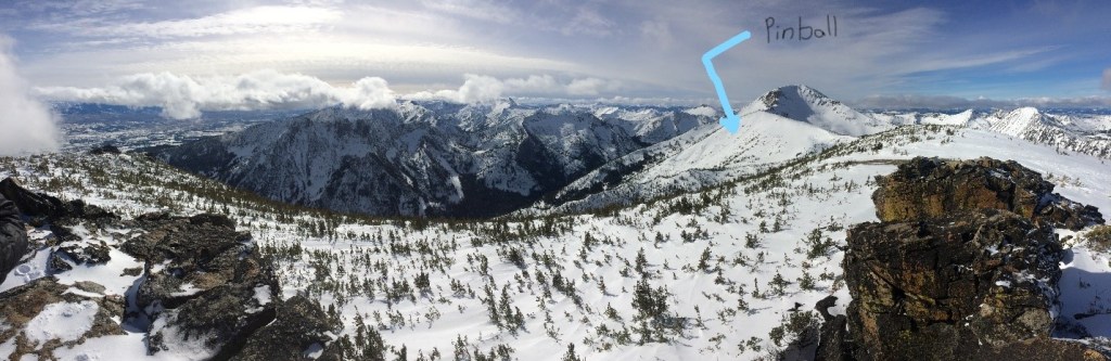 One well-known line called the Pinball Wizard Gully drops off the ridge in between Little St. Joe and Saint Joseph peak all the way to Bass Creek. I had never skied it but had heard legend and was dying to give it a go. Sam was game, and we set out on April Fool’s Day to attempt our first Bitterroot peak-to-creek classic!