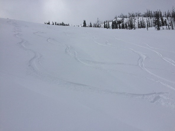 (L) Bass Creek Crags with fresh powder. (R) The Little St. Joe bowls above the cabin.
