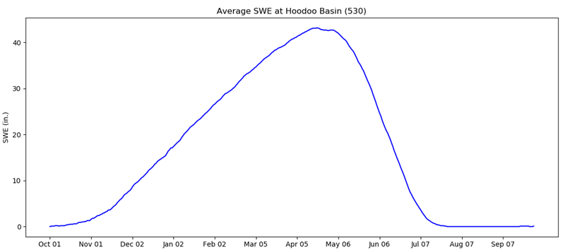 It’s important to remember that a typical year at Hoodoo Basin may look very different from a typical year elsewhere. A snotel in Oregon or Alaska may have a shorter or longer season but get just as much snow. Different elevations also reach their max at different times. Furthermore, Hoodoo Pass gets tons of snow, maxes out at more than 100” of settled base most years, and has an average max SWE of 44.6”. That’s nearly four FEET of water trapped in the snow annually. Many famous ski areas are near snotels in the 90th percentile of SWE, so this might be somewhat representative of a typical year at a ski area that’s known for getting hammered.